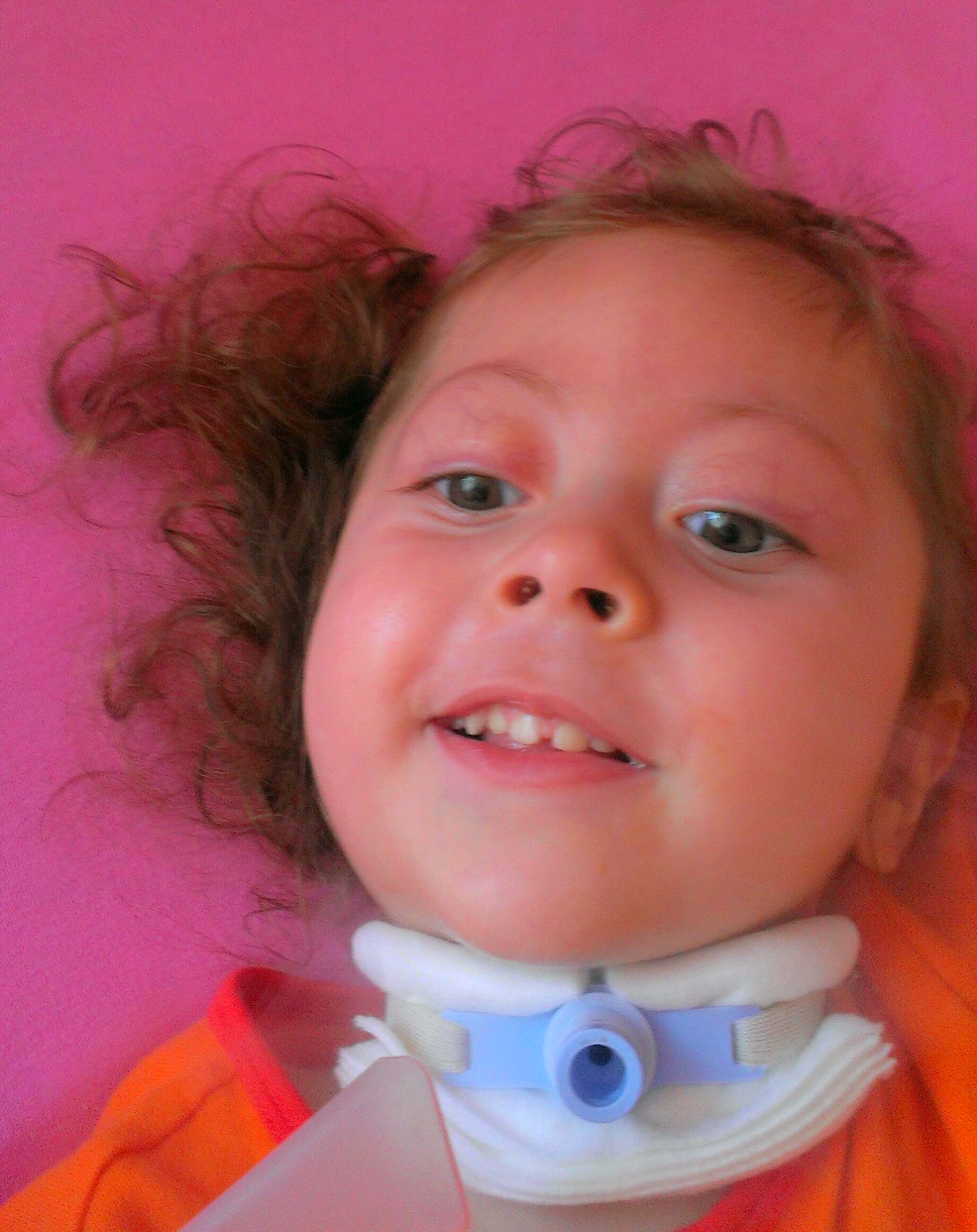 Przez parę pierwszych dni moi Rodzice uczyli się nowej mnie. Uczyli się, jak mi pomagać z usuwaniem śliny, jak umieć słyszeć mój niemy płacz, jak nauczyć się ze mną rozmawiać, mimo że nie mogę wydać żadnego dźwięku. No może z tym żadnym to troche przesada, bo parę dni po zabiegu zaczęłam wydawać bardzo ciche i krótkie dźwięki. Nadal bardzo rzadko to mi się przydaża, ale jak już się przydaży to radość dookoła niesamowita.