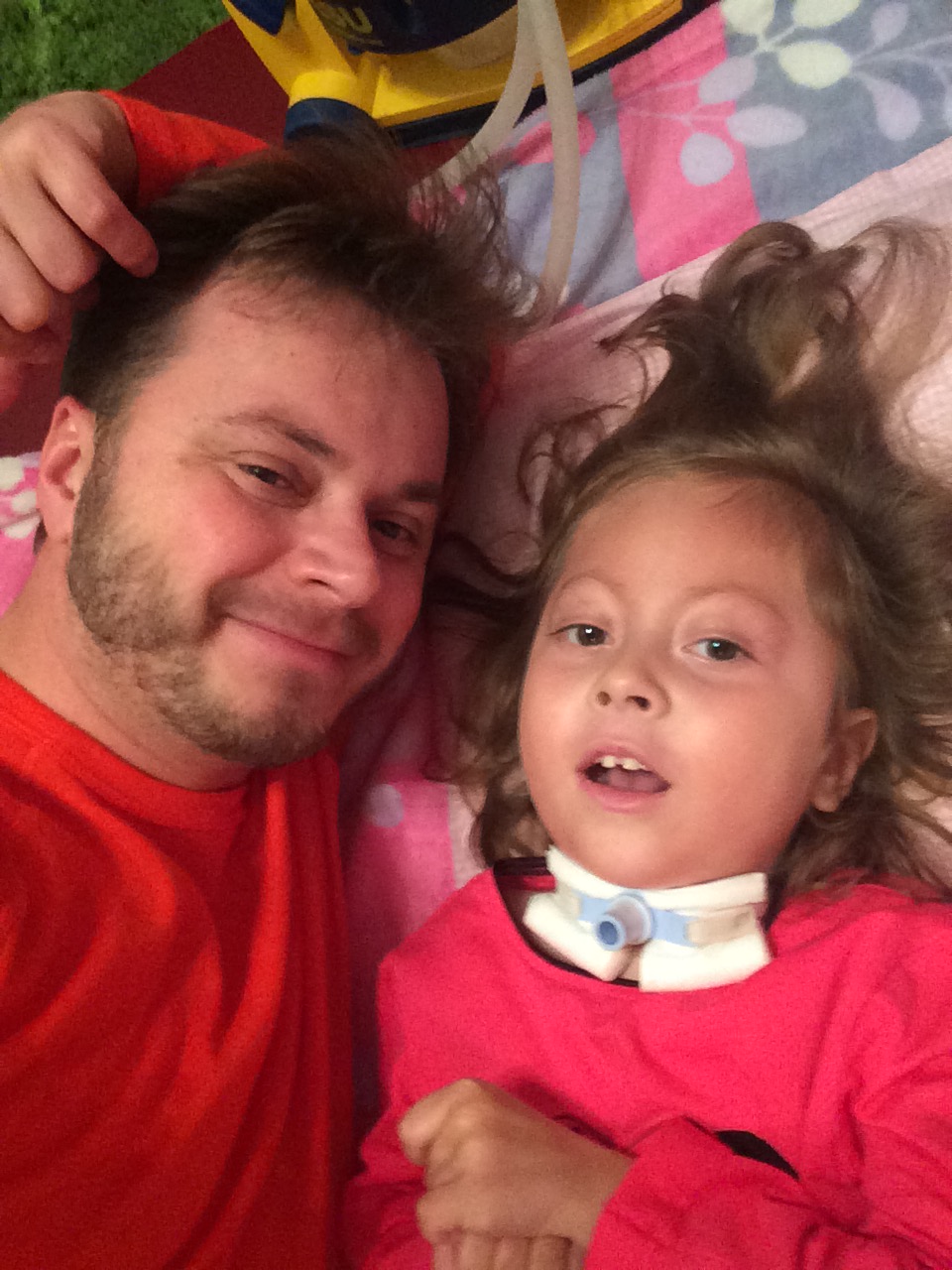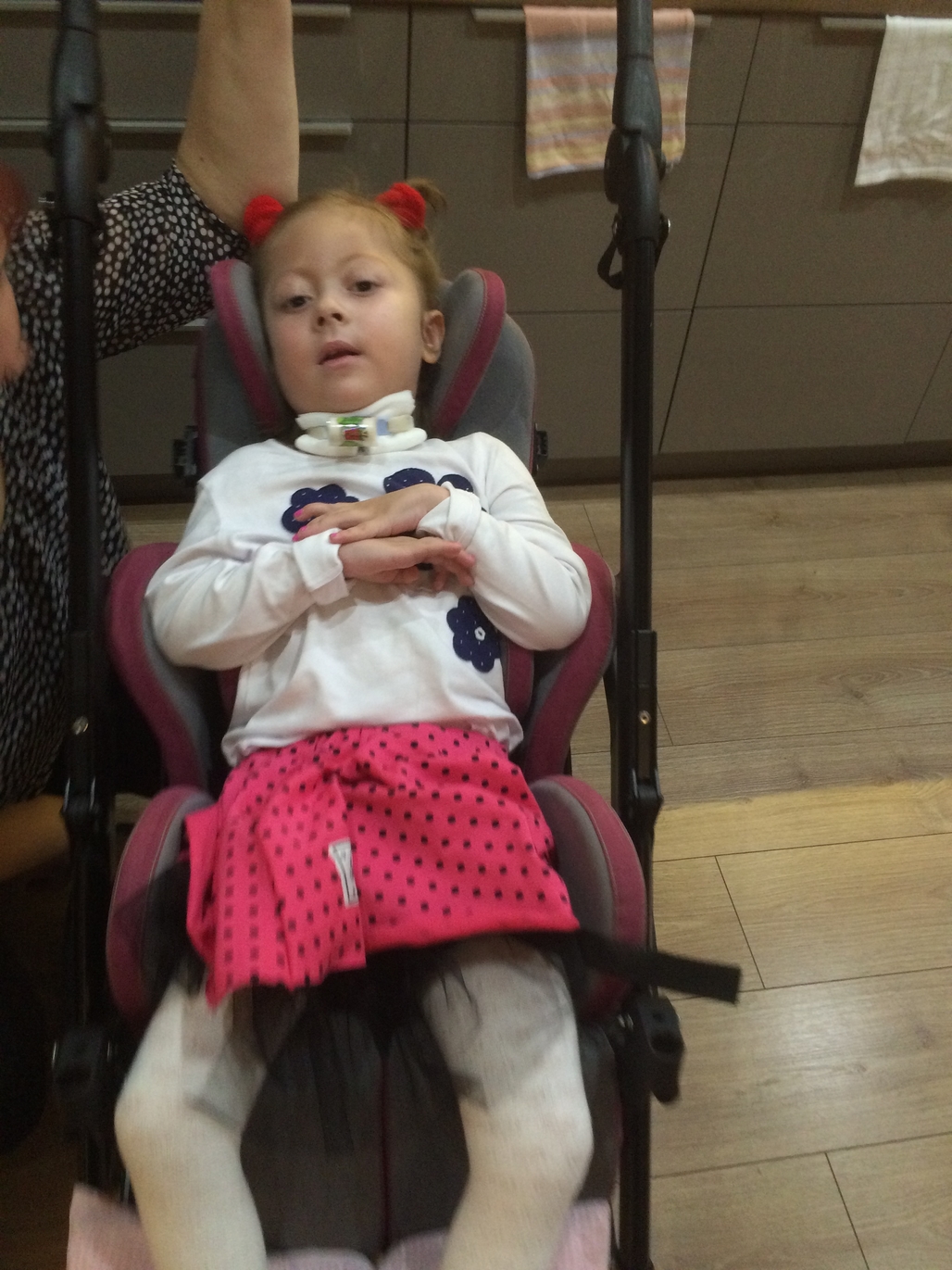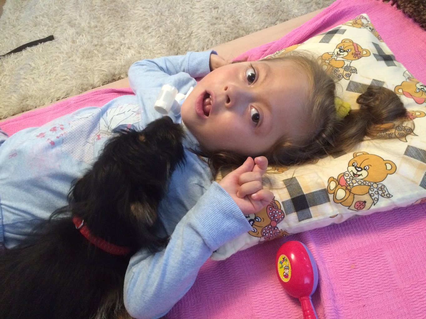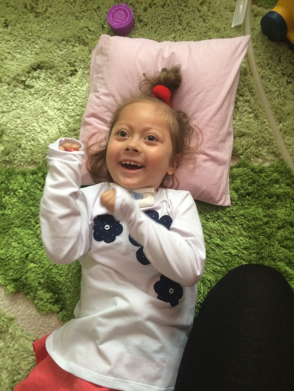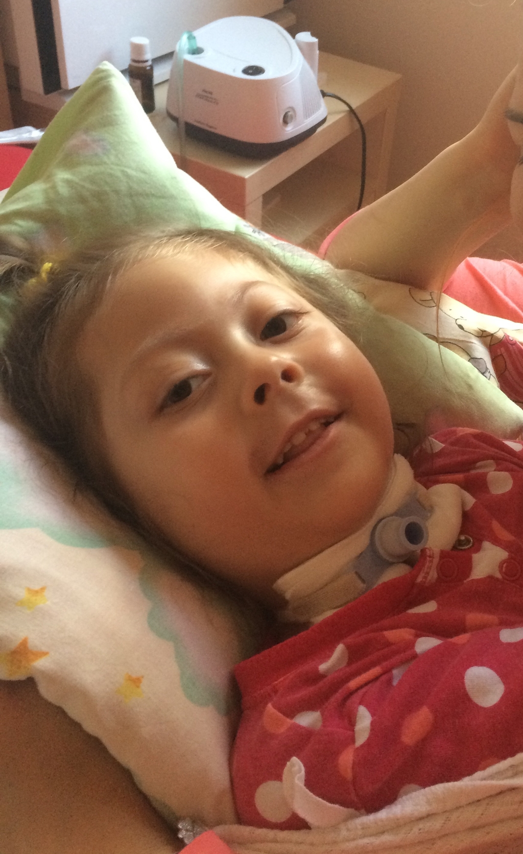 Równocześnie razem z infekcję pojawiły mi się odruchy wymiotne, wymiotowałam, o różnych porach dniach i nocy. Taki stan utrzymywał się bardzo długo, nie że codziennie wymiotuję, ale „rwie” mnie do wymiotów. Jest to bardzo nie przyjemnie i trochę niebezpieczne, ponieważ śpię tylko na plecach jak zacznę wymiotować a rodzice nie zauważą…toteż mają dodatkowe zajęcie pilnowania czy nie będę wymiotować. Jednak od dwóch tygodni mam zwiększone leki na brzuszek, odstawiliśmy trochę jedzenia, tłuszczy i widać poprawę. Nie chwaliłam się ale ostatnio całkiem sporo przytyłam i ważę już 14 kg. Tata mówi, że niedługo będę mieć cellulit czy coś takiego.