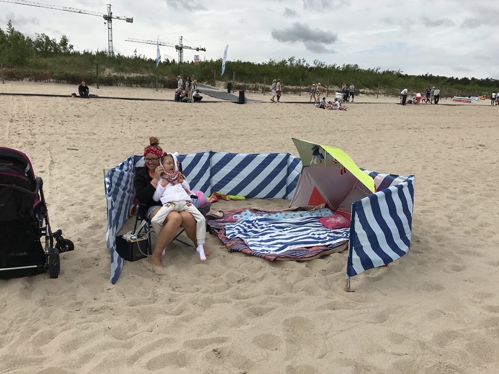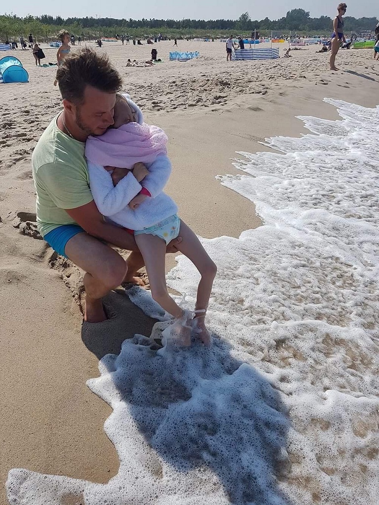 Właściwie tegoroczny wypoczynek na wakacjach nie za bardzo rożni się od poprzednich. Jeździmy nad nasze polskie morze i w to samo miejsce, a mimo wszystko zawsze mi się tutaj podoba. Chociaż za każdym razem przytrafi mi się cos innego. W czerwcu złapałam zapalnie jamy ustnej z paskudnymi krostami w buziaku, które ciągnęło się prawie dwa tygodnie. Udało się to paskudztwo opanować przy pomocy pielęgniarki z gdańskiego hospicjum. Teraz łapie mnie czasami wyższa gorączka, która jest chyba spowodowana ząbkowaniem ( taka mamy nadzieje). Te nasze letnie wyjazdy to wspaniały czas bycia razem, rodzice jakby bardziej wyluzowani, a ja szczęśliwa. I mimo, że to nie jest takie normalne wylegiwanie się na plaży, mimo że jest wymagająca pogoda, to najważniejsze, że pomaga mi nabrać sił i odporności przed różnymi alergiami, przeziębieniami i innymi niefajnymi rzeczami.