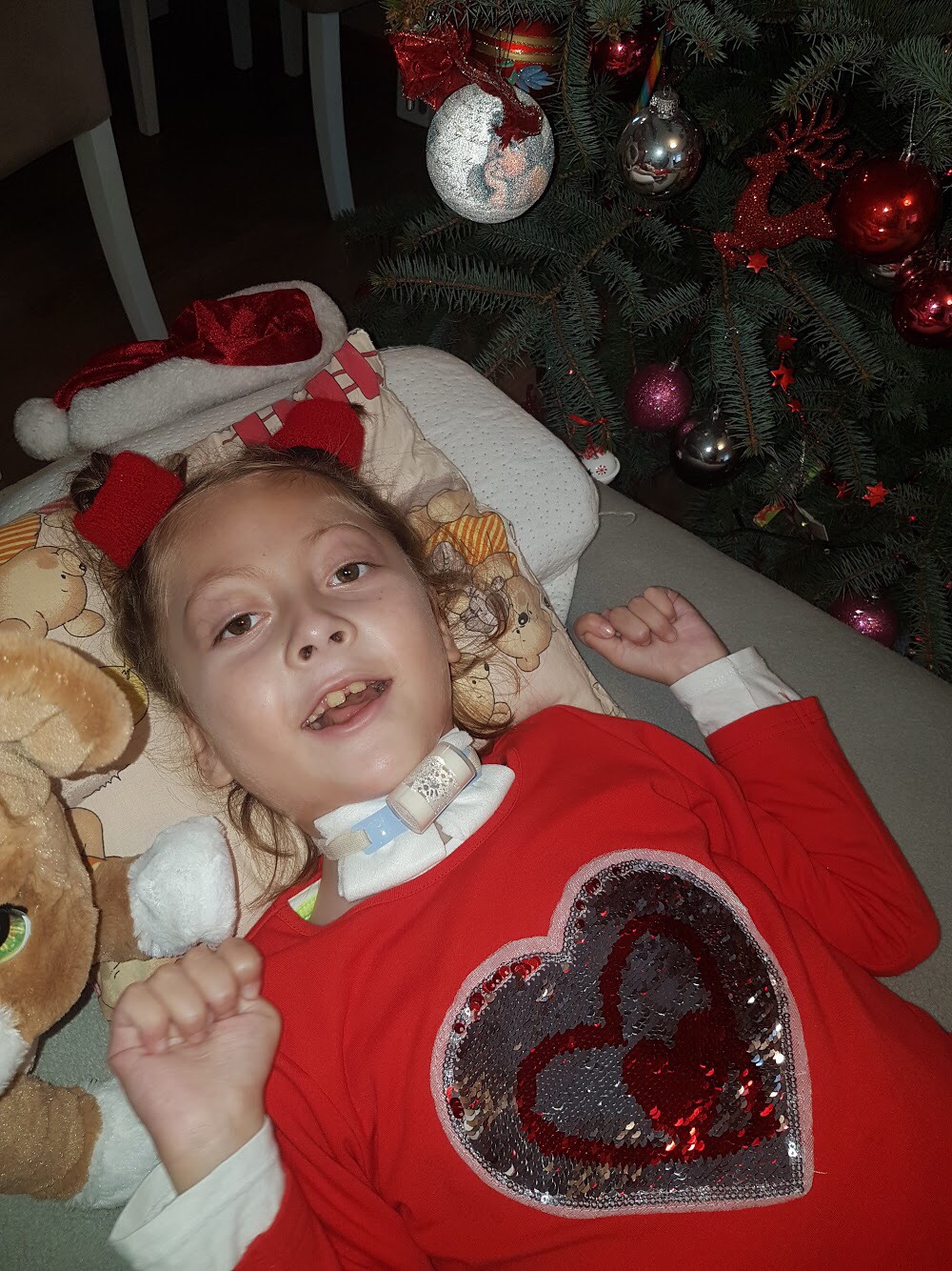 Miałam tyle planów związanych z przygotowaniem świąt, tyle na nie czekałam. Było mi bardzo smutno, bo miałam Mamie pomagać sprzątać i gotować, mieliśmy razem ubierać choinkę, pakować prezenty i robić stroiki. Zamiast tego ciągle kasłałam, ciągle miałam inhalacje albo dotlenianie, oklepywanie i odsysanie z buzi. Miałam dużo śliny, z którą nie mogłam sobie kompletnie poradzić.