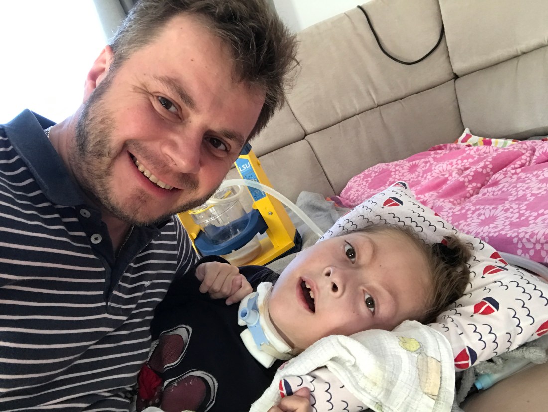 W domu Bartuś bardzo o mnie dba, mówi mamie gdzie ma mnie położyć, zabiera mnie poskakać na trampolinie, przynosi zabawki, również te które zabroniłam mu dotykać. Czasami mnie nakarmi i da kiełbasy do buzi, borówkę czy serek. Mimo że stara się bardzo mi pomóc, Rodzice jednak wolą sami mnie karmić i nie pozwalają się jednak wyręczać). Ostatnio Bartuś po fizykoterapii zaczął sam mnie odsysać. Zostałam z nim na chwilę sama w pokoju, a on wyjął ssaka i wsadził mi do rurki. Potem starał się założyć kominek. Bardzo chce się mną opiekować, taki mój Kochany brat!!! :)))