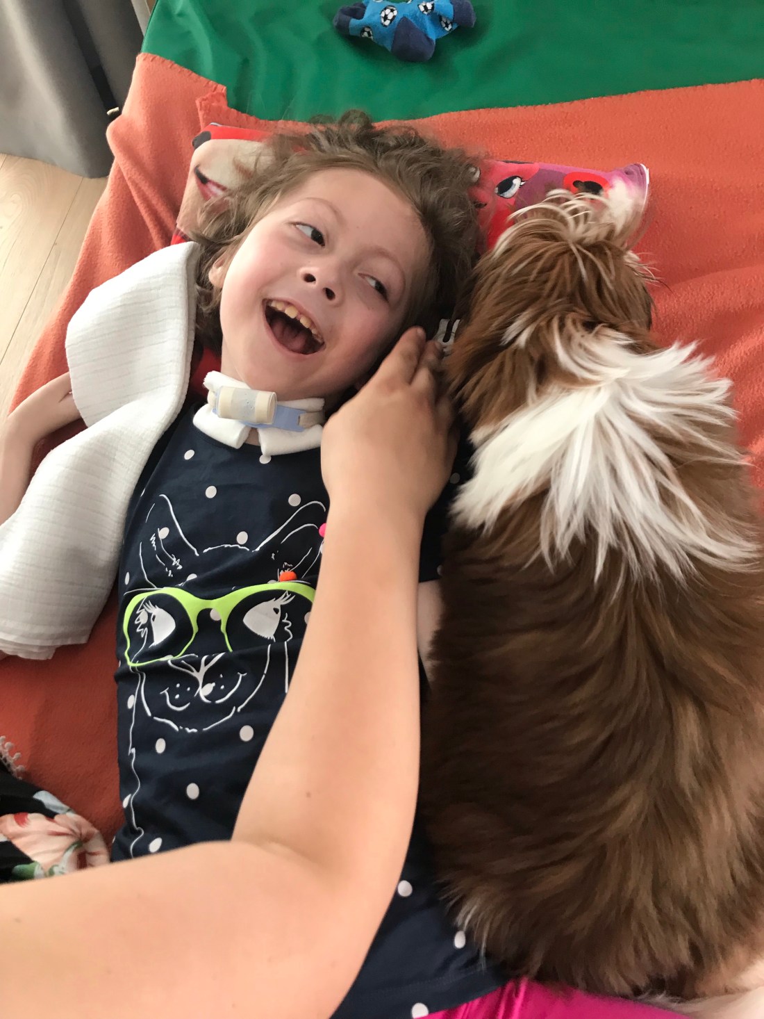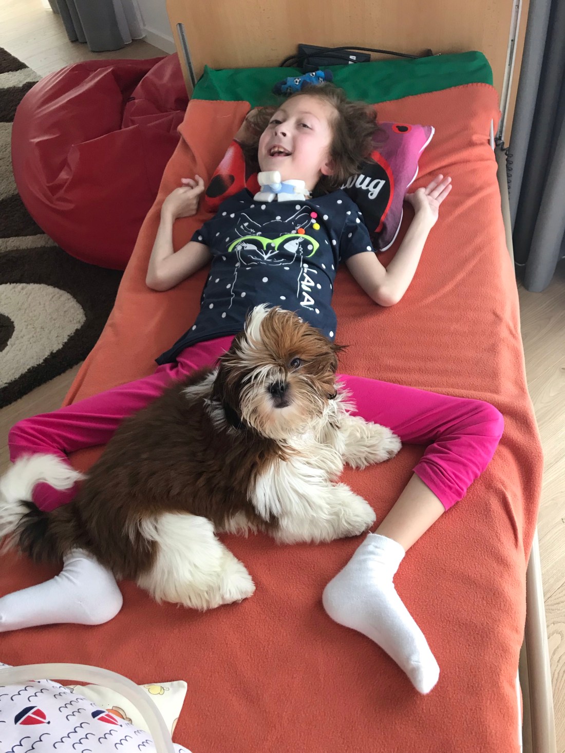 Od września znowu zaczęła przychodzić nauczycielka Renia. Jak lepiej się czuję to robimy mnóstwo fajnych rzeczy. Jak nie mam siły, lub źle się czuje to też przychodzi i mnie po prostu pociesza, głaszcze i czyta książeczki.