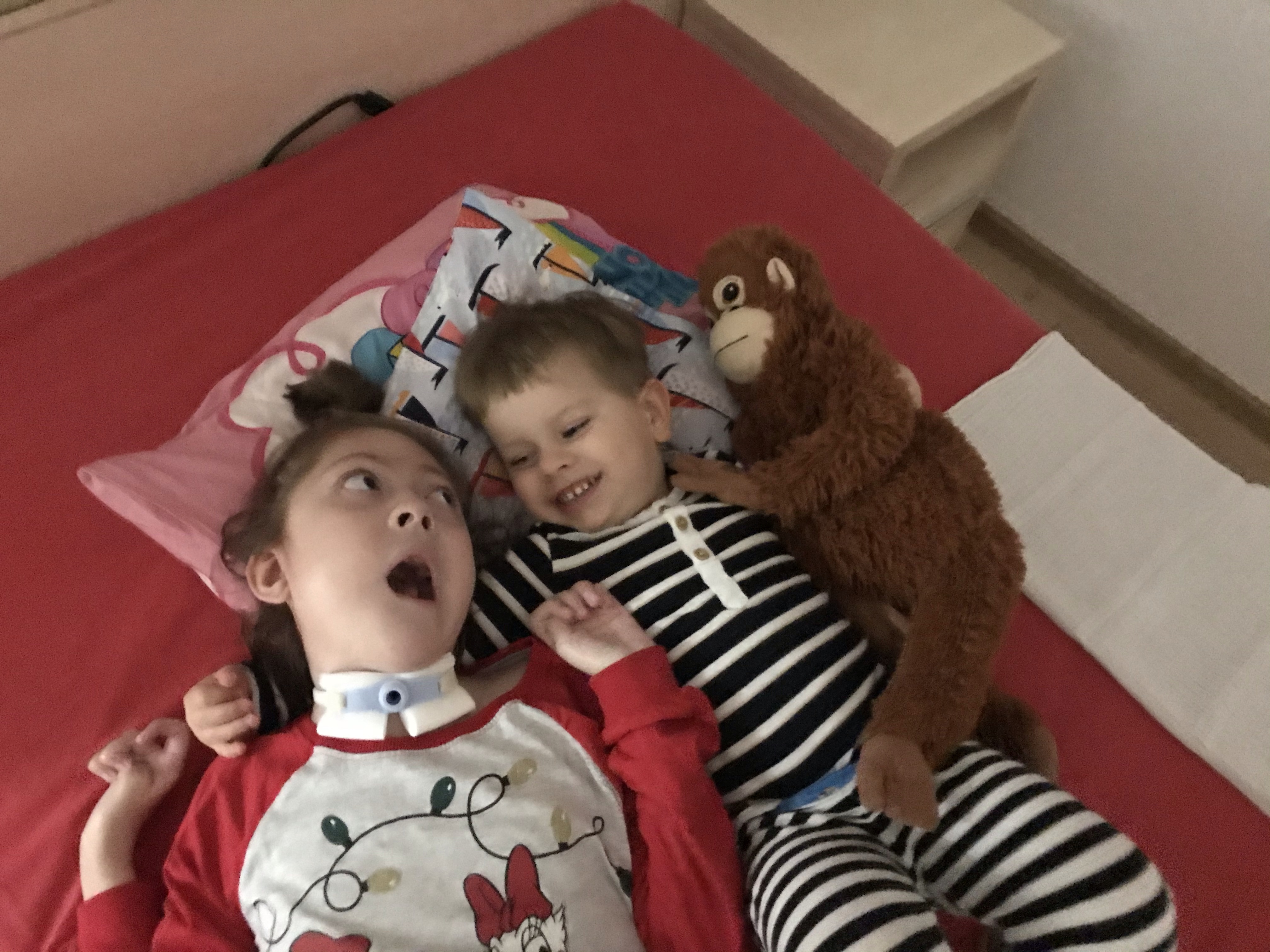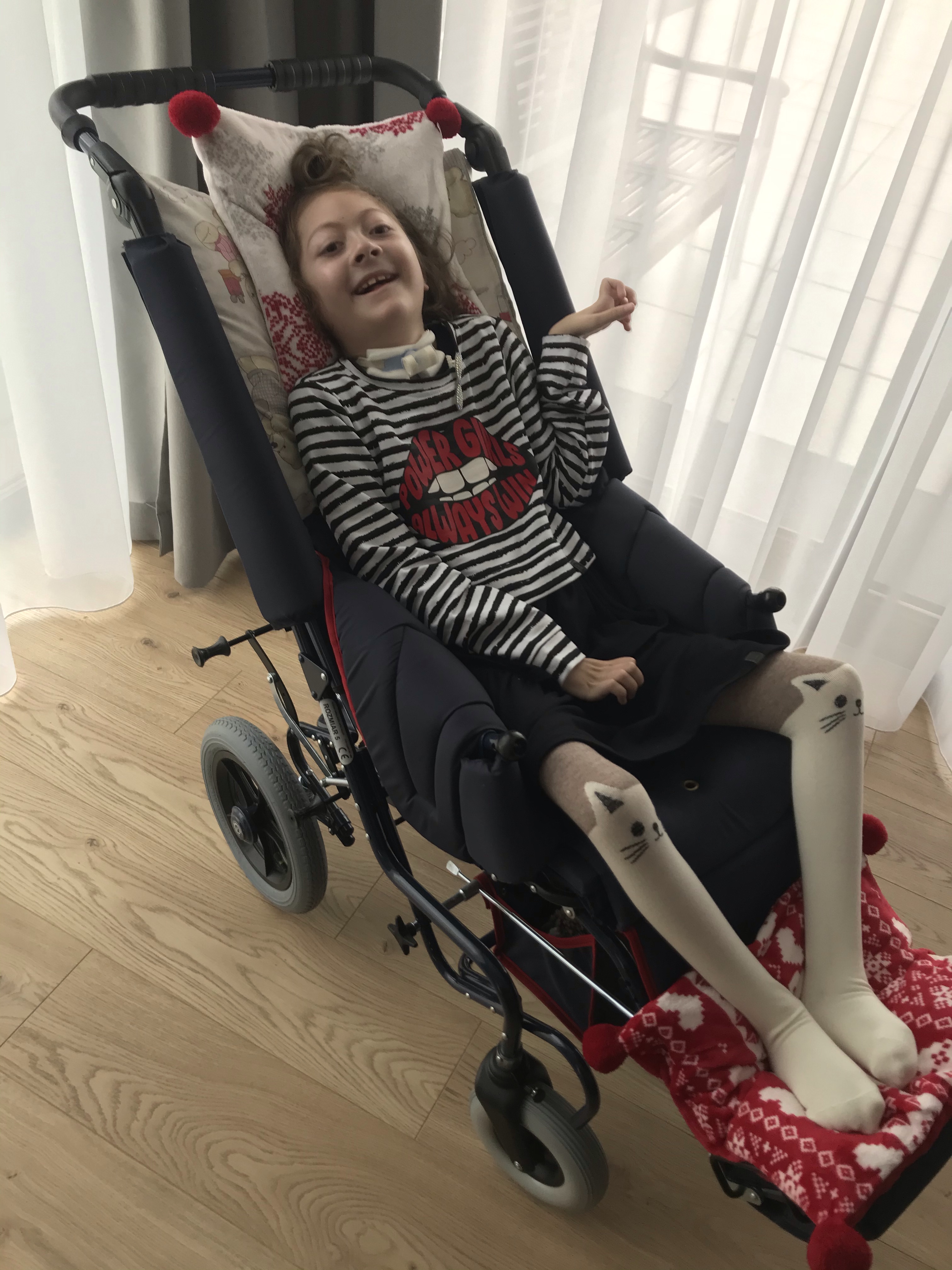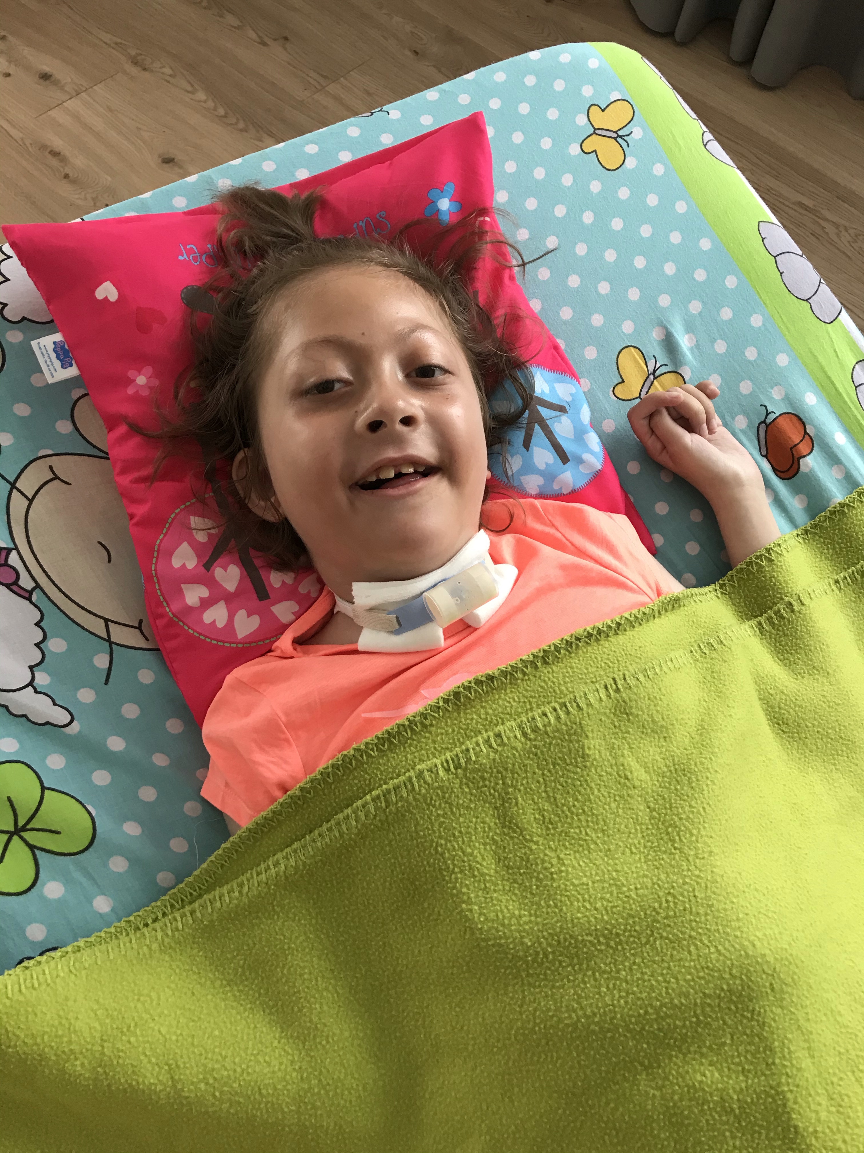 Niestety moim największym problem jest rosnące napięcie mięśniowe. Powodujące ogromny bol, deformację kręgosłupa, szczękościsk, wyginanie. Jest mi trudno opisać jak to jest mając tak silne napięcie. Z pewnością jednak każdy miał kiedyś skurcz w nogę. Podobnie jest z napięciami, tylko że są cały czas i we wszystkich mięśniach. Tydzień temu przyjechał do mnie Pan doktor i ostrzyknął mnie botuliną. Miałam kilkanaście zastrzyków w różne mięsnie: na kręgosłupie, karku, nogach, żuchwie. Pomimo znieczulających maści i plastrów jest to dla mnie bardzo nieprzyjemne i bolące. Rodzice decydują się na obstrzykiwanie, żeby nie musieć stosować kolejnych leków zwiotczających (których już teraz mam bardzo dużo).