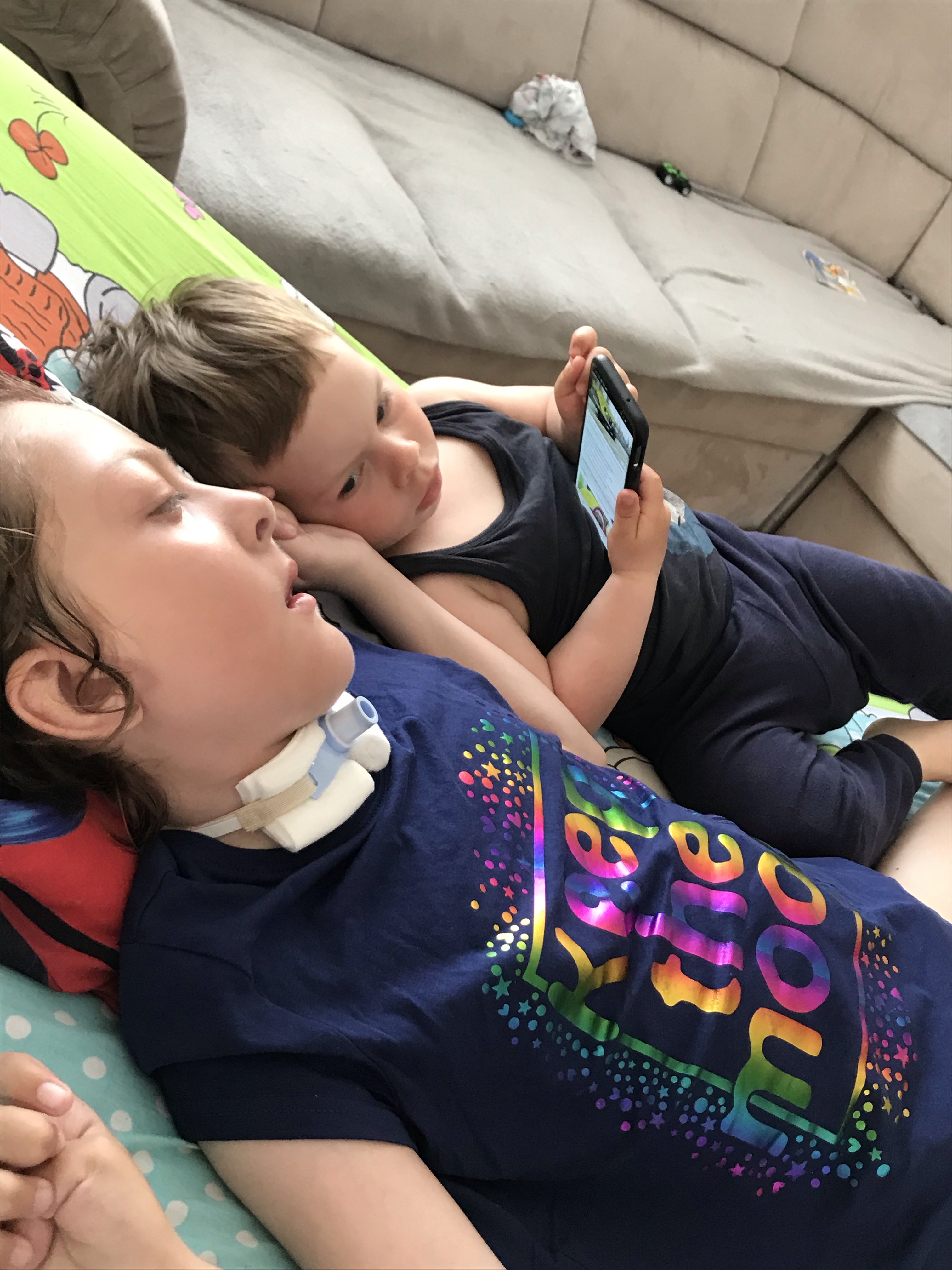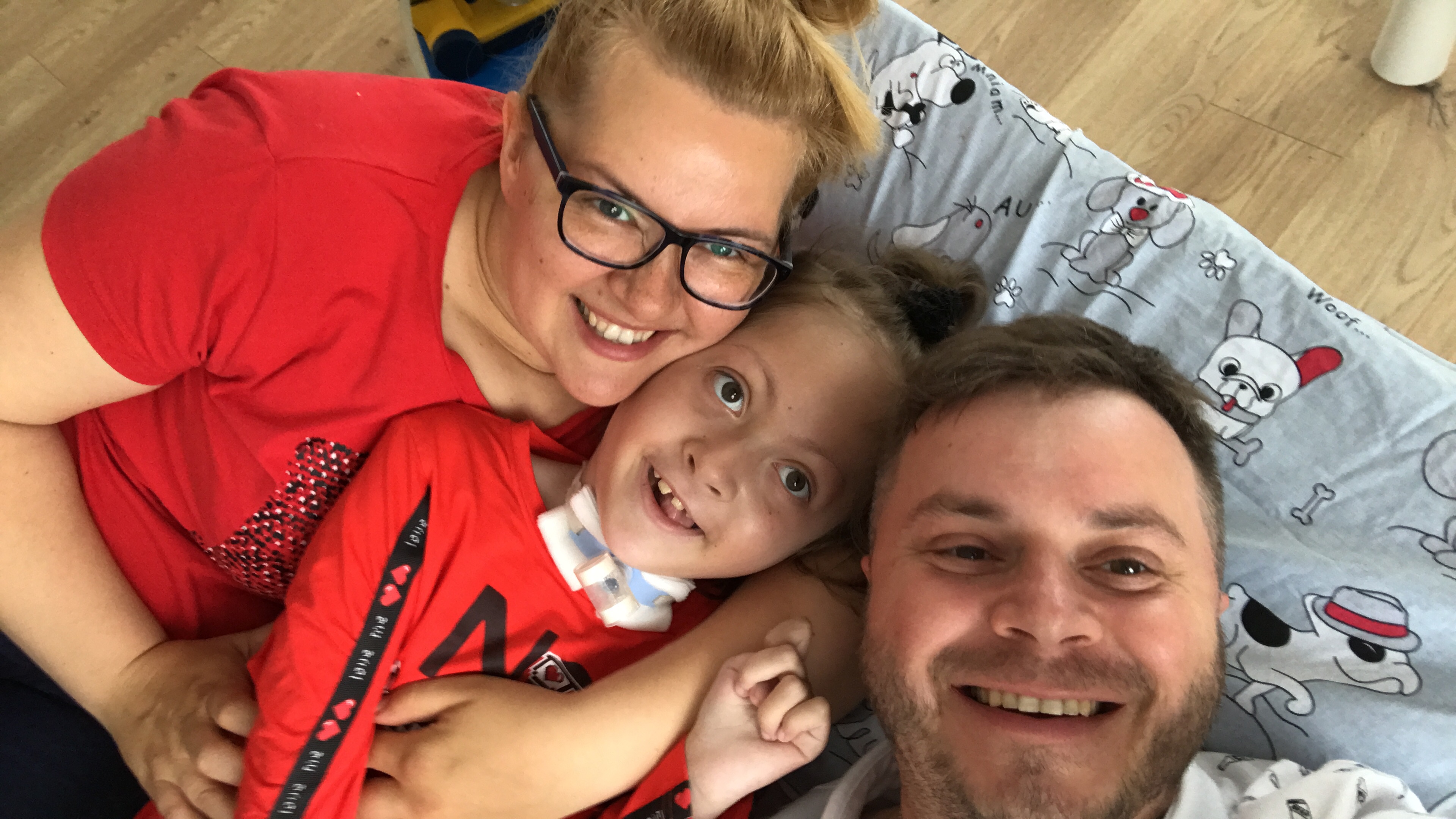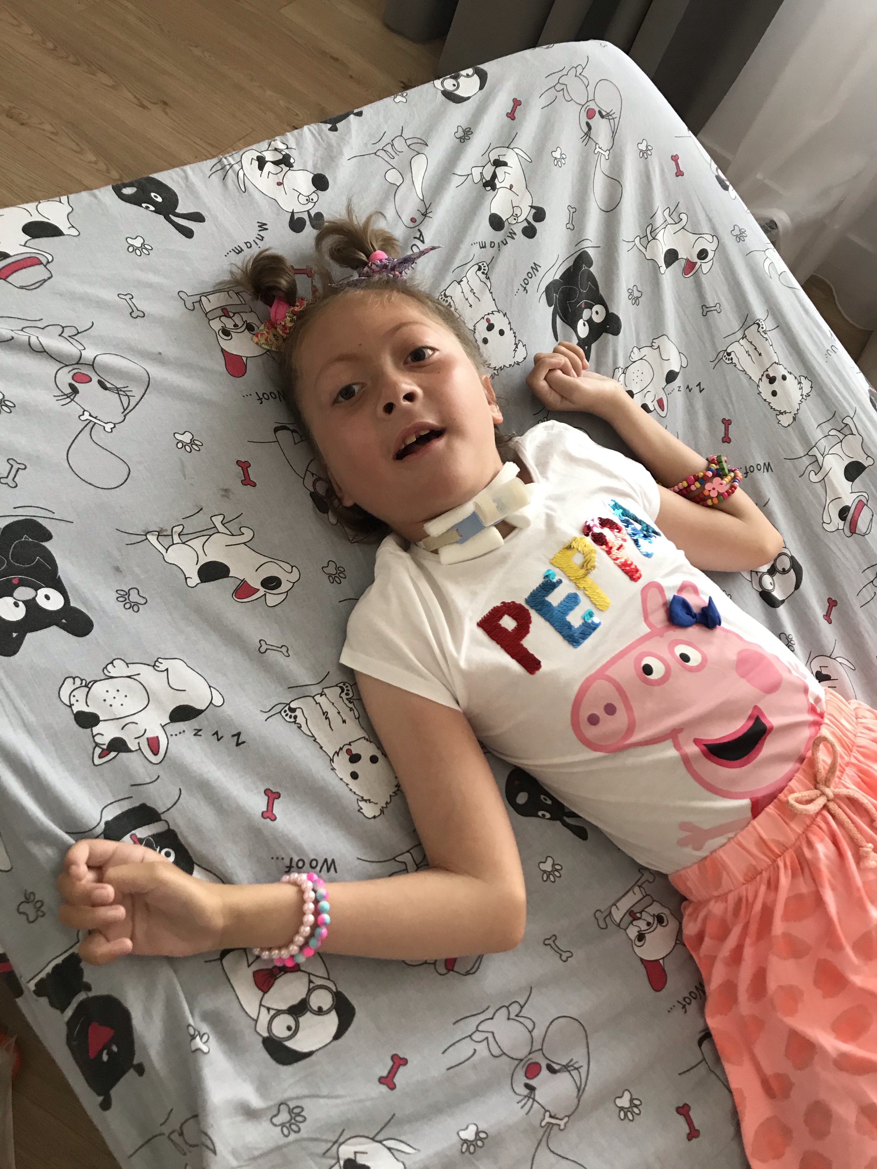 Niestety moim największym problem jest rosnące napięcie mięśniowe. Powodujące ogromny bol, deformację kręgosłupa, szczękościsk, wyginanie. Jest mi trudno opisać jak to jest mając tak silne napięcie. Z pewnością jednak każdy miał kiedyś skurcz w nogę. Podobnie jest z napięciami, tylko że są cały czas i we wszystkich mięśniach. Tydzień temu przyjechał do mnie Pan doktor i ostrzyknął mnie botuliną. Miałam kilkanaście zastrzyków w różne mięsnie: na kręgosłupie, karku, nogach, żuchwie. Pomimo znieczulających maści i plastrów jest to dla mnie bardzo nieprzyjemne i bolące. Rodzice decydują się na obstrzykiwanie, żeby nie musieć stosować kolejnych leków zwiotczających (których już teraz mam bardzo dużo).